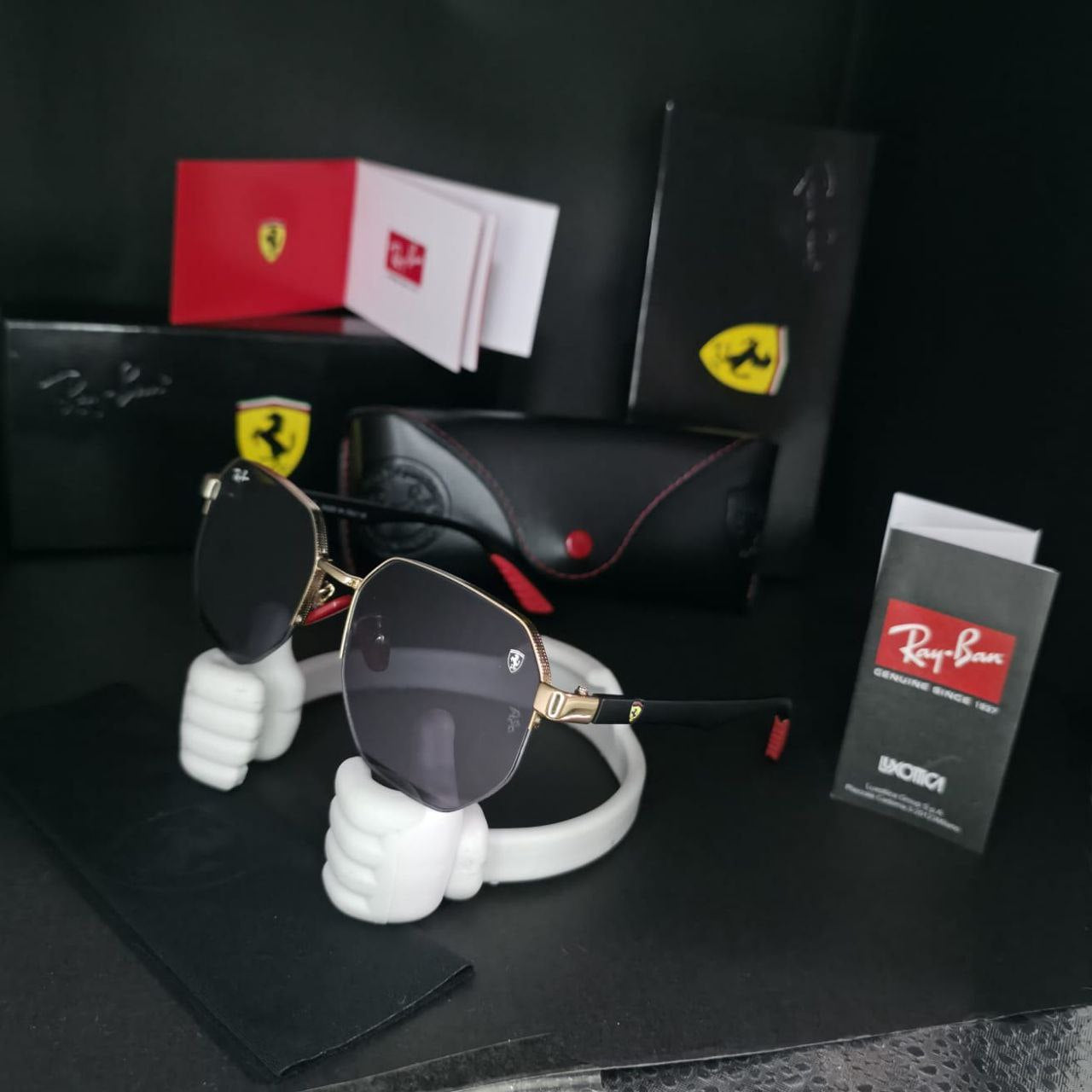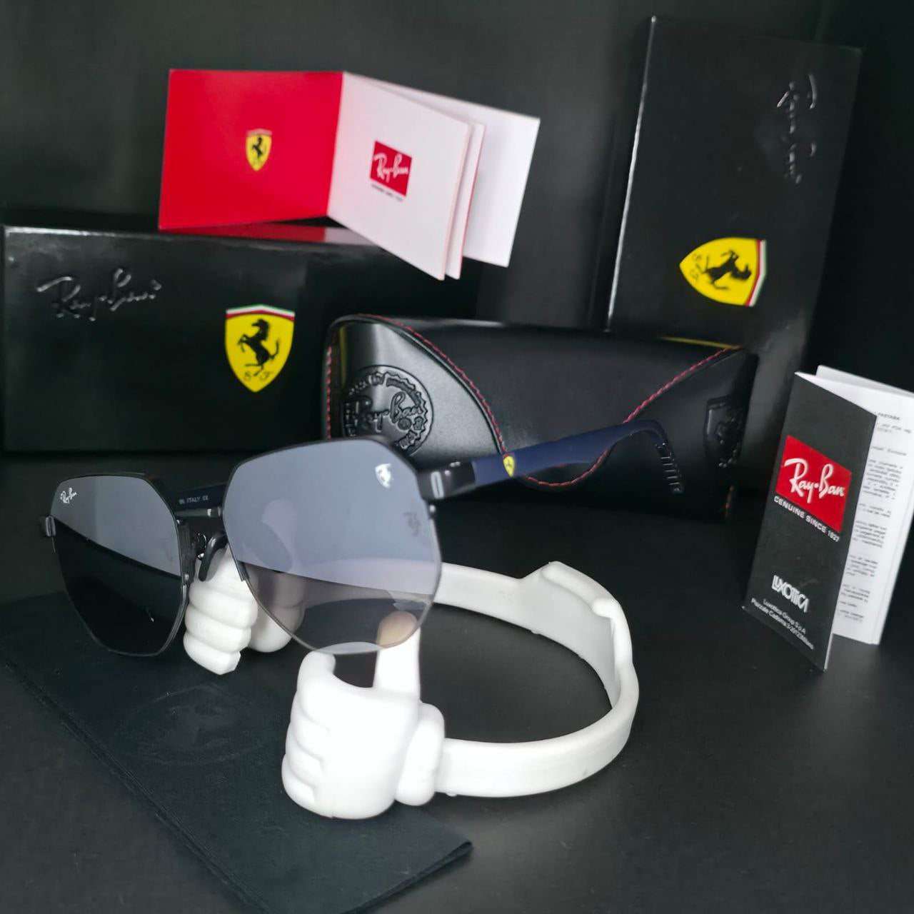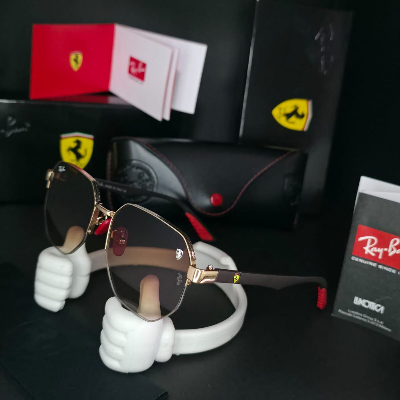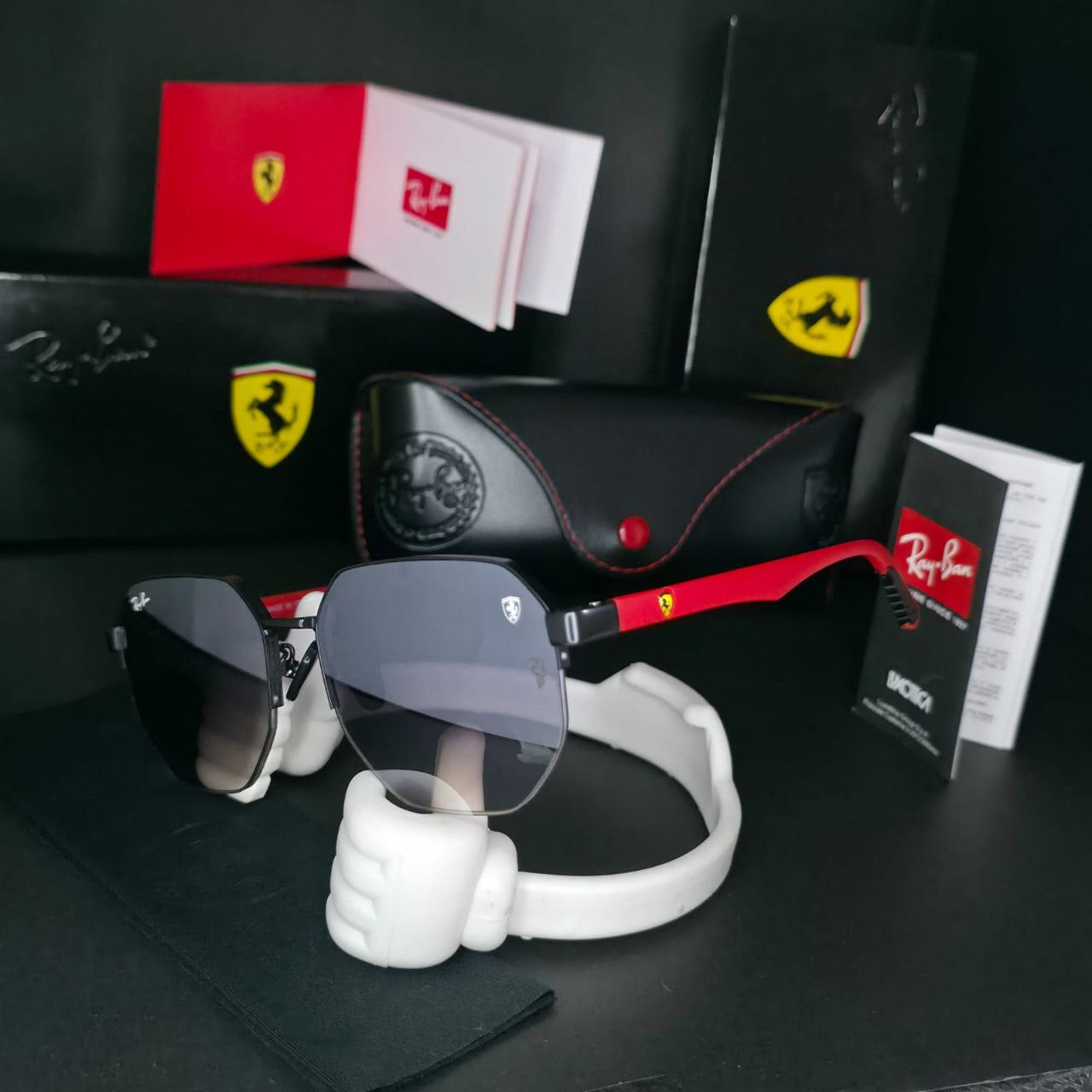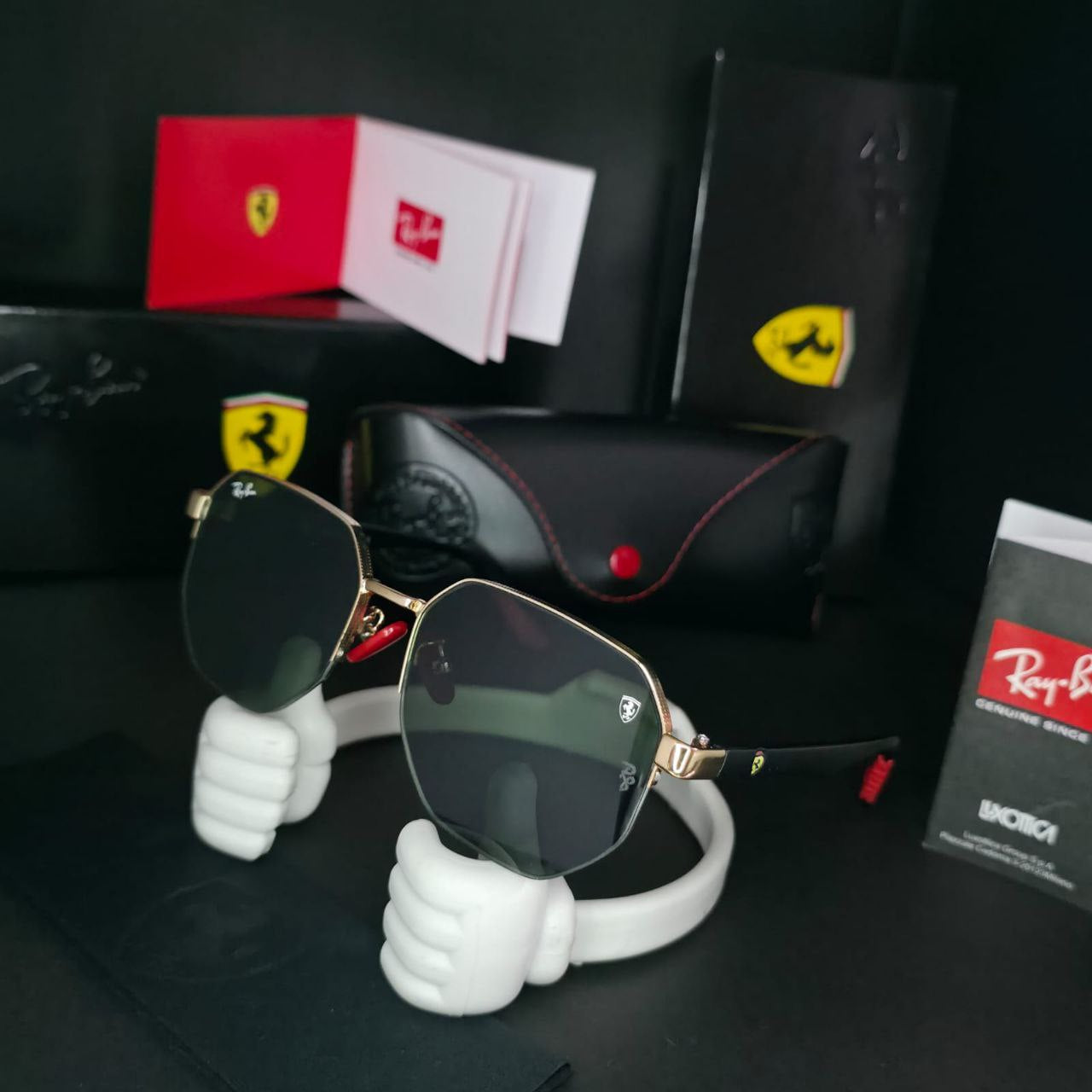 "Vive la experiencia de la velocidad y el estilo con las Gafas Ray-Ban Ferrari. Inspiradas en la legendaria escudería, combinan materiales premium, lentes de alta protección y un acabado deportivo único. Perfectas para quienes buscan elegancia, rendimiento y distinción en cada mirada." 😎🏎️