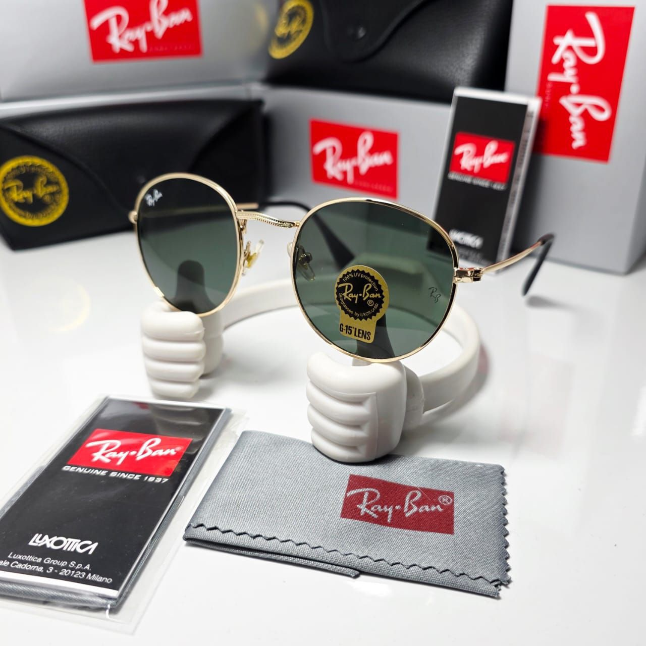 Estas gafas unisex, las favoritas de los icónicos creadores de tendencias, cuentan con una elegante montura metálica dorada y lentes G-15 de color verde cristal.